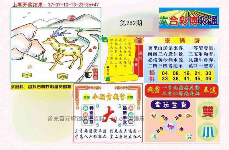 282期:无敌七肖【狗兔马猴羊龙蛇】开:牛41