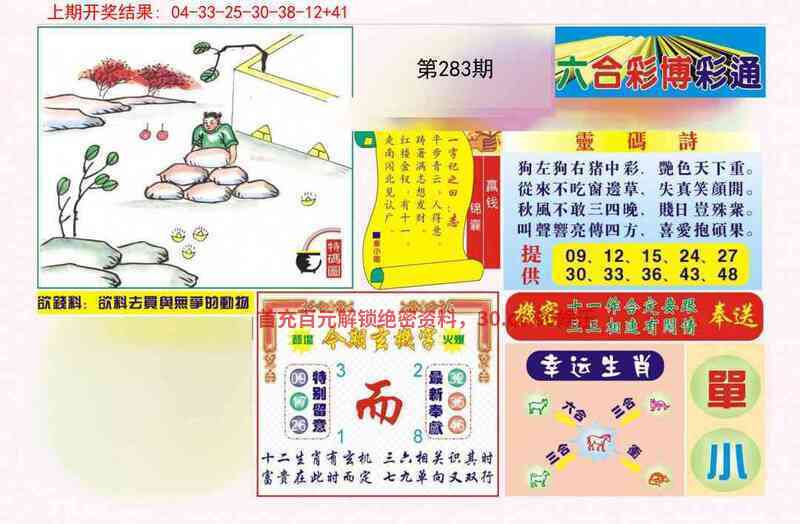 283期:无敌七肖【牛猪羊猴狗鼠】开:鸡45准